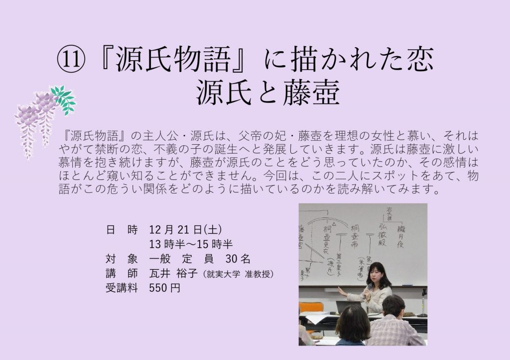 | ⑪『源氏物語』に描かれた恋 -- 源氏と藤壺 -- 終了しました | |