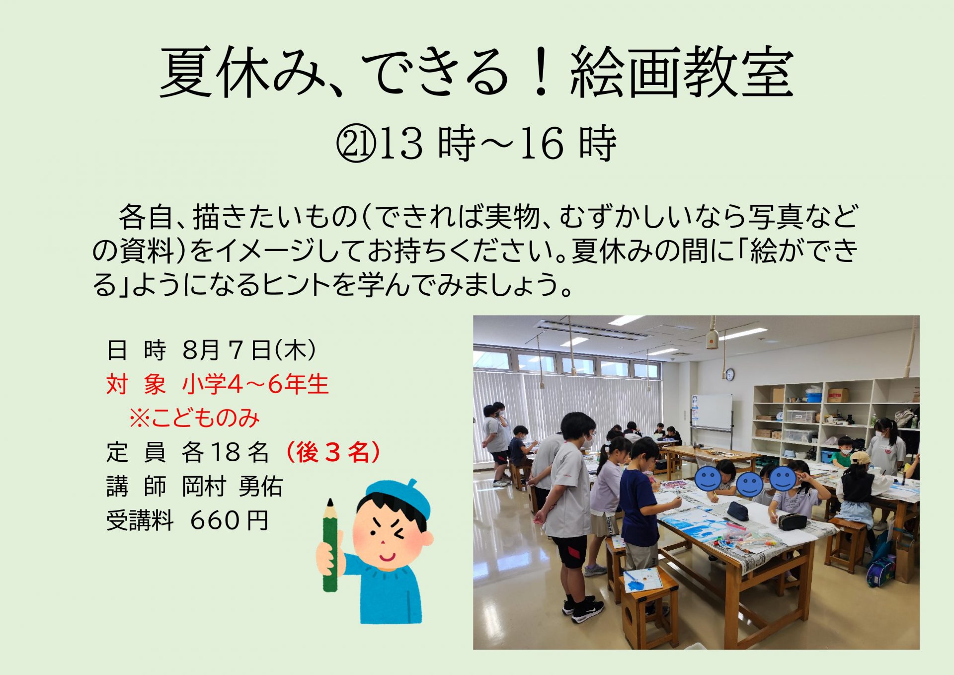 夏休み絵画教室 時間帯で対象学年が異なる ㉒10時~12時 ㉓13時~16時