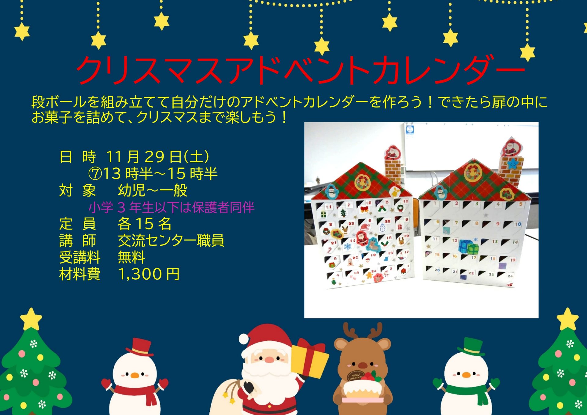 段ボールを組み立てて自分だけのアドベントカレンダーを作ろう!できたら扉の中にお菓子を詰めて、クリスマスまで楽しもう!