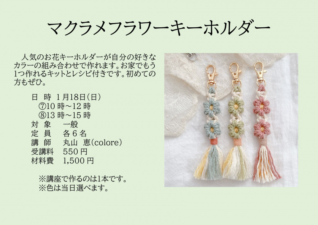 | マクラメフラワーキーホルダー ⑦午前 ⑧午後 | |