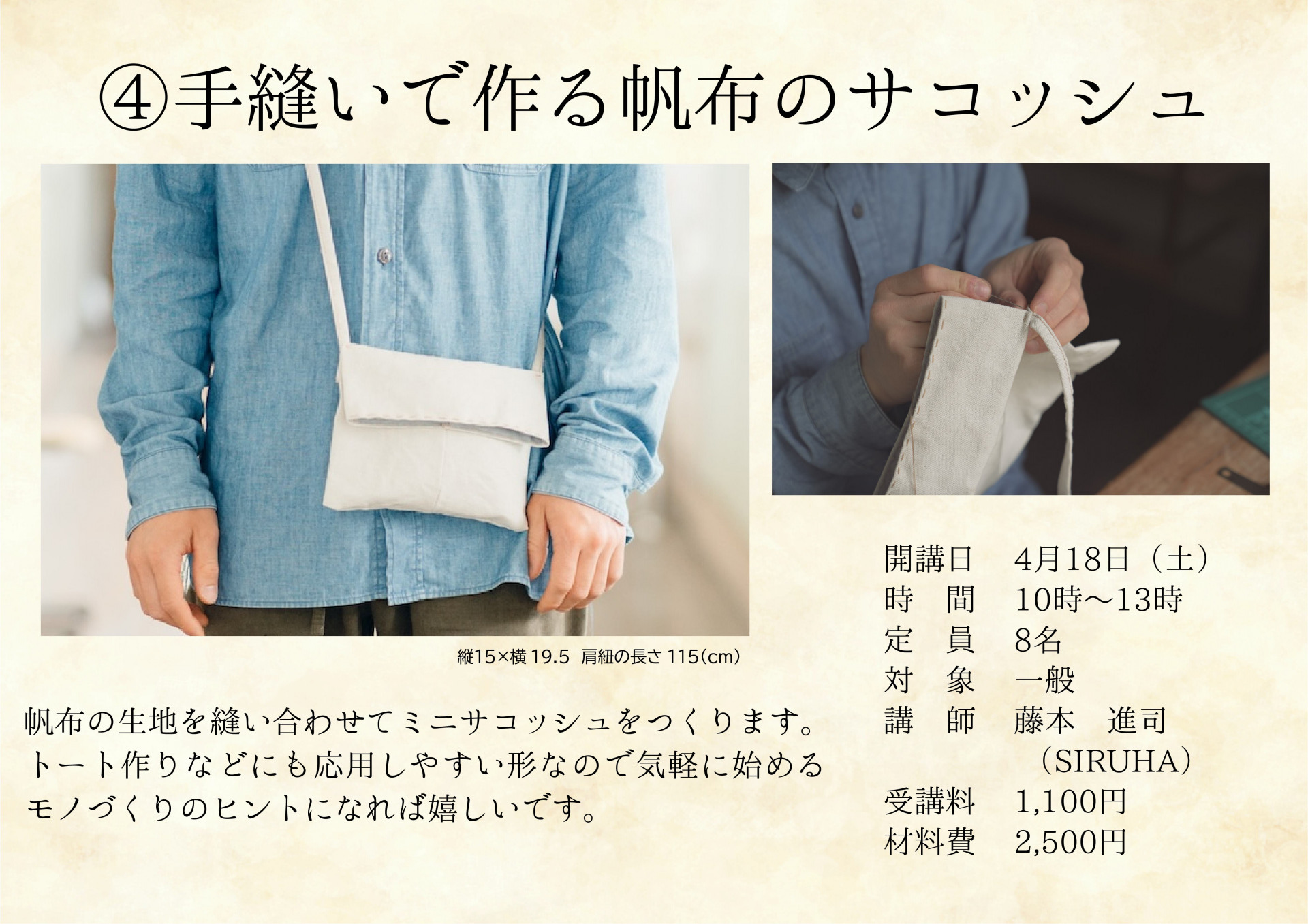 手縫いで作る帆布のサコッシュ