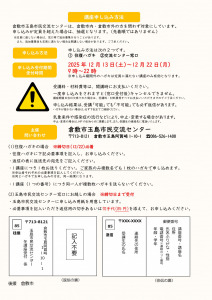 | 対象詳細 | 小学生親子※親1人子ども2人まで可 ※親2人子ども2人は2組となります |